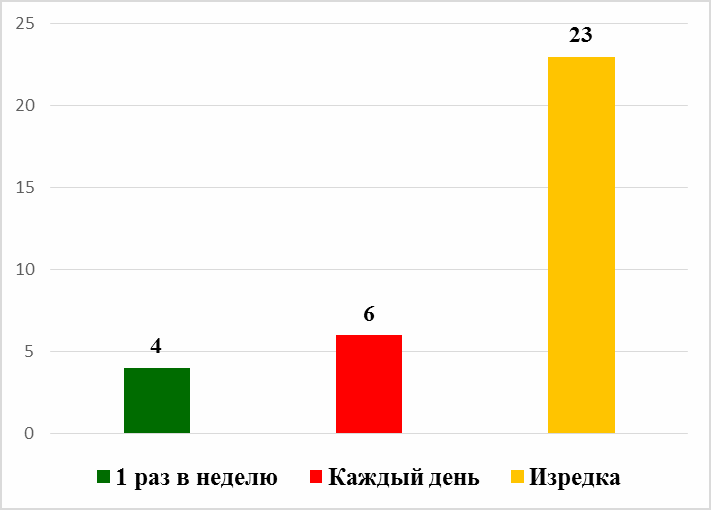 Диаграмма 6 отображает регулярность употребления энергетических напитков воспитанниками Центра. Распределение ответов участников анкетирования таково: