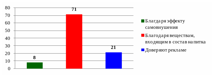 71% респондентов считают, что энергия появляется благодаря веществам, входящим в состав энергетического напитка;