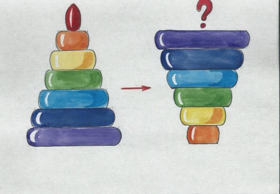 Собираемпирамидку наоборот от маленького колечка к большому. Устоит ли? Почему?