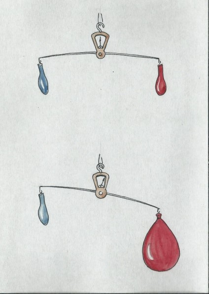 Вновь взвешиваем. Что произошло? Надутый шар перевешивает пустой: воздух имеет вес.