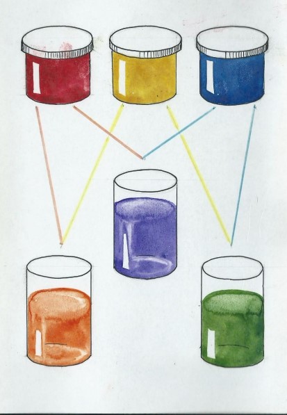 В третьем стакане смешиваем желтый и синий – получаем зеленый. Почему?
