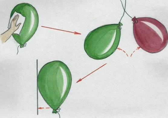 если два шара приставить друг к другу, они начнут отталкиваться. Почему?