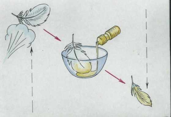 1. Берем птичье перо, подбрасываем его вверх, дунем. Оно плавно полетит.