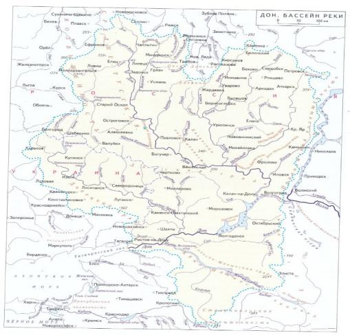 Рис.1Притоки и бассейн реки Дон.