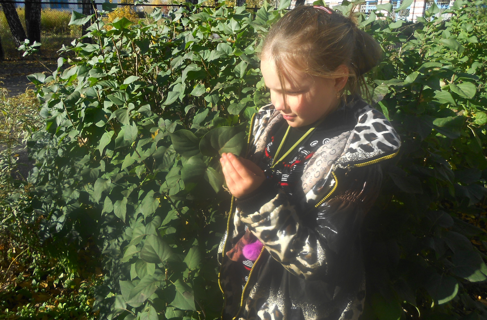 Так же я проверила, действительно ли сирень перед листопадом не меняет окрас своей листвы. Я вышла на прогулку в парк, где растёт сирень, и убедилась в том, что опавшая листва под кустами сирени – зелёная.