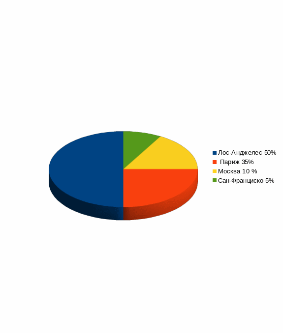 1. Москва. 2. Сан — Франциско. 3. Лос — Анджелес. 4. Париж.