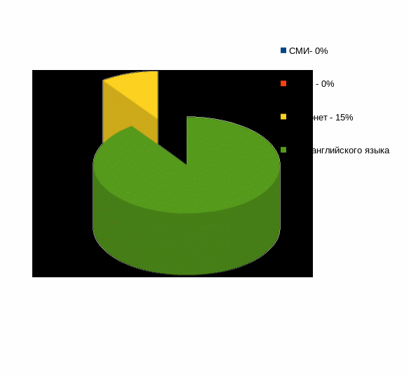 1. Наибольшая часть респондентов 85% узнали информацию о Лос — Анджелесе на уроке английского языка.