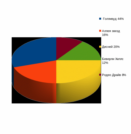 1. Наибольшая часть респондентов 44% хотели бы посетить Голливуд.