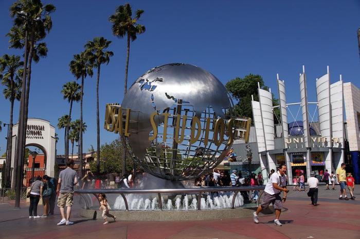 Голливуд и его киностудии, во многих из которых организованы экспозиции, посвящённые кино, Голливудский бульвар (на его тротуарах с 1960 выбиваются звёзды с именами выдающихся киноактёров, а также деятелей телевидения, грамзаписи и театра — «Голливудская аллея славы»)(10).