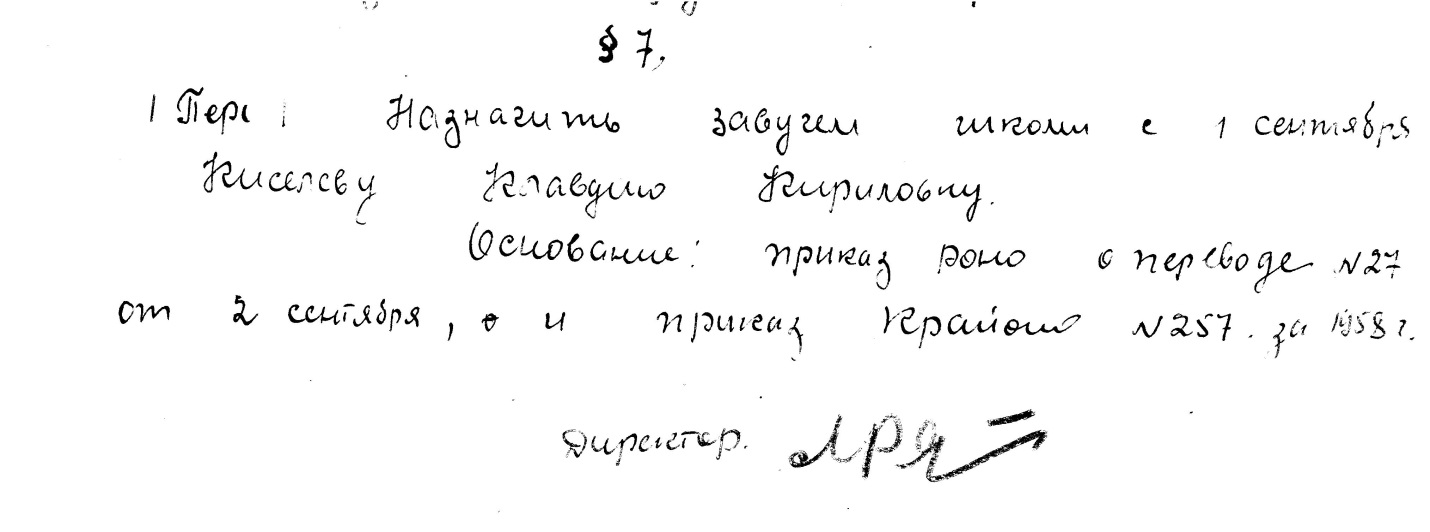 Копия приказа №35 от 3.09.58 г. из Книги приказов за 1958 г.