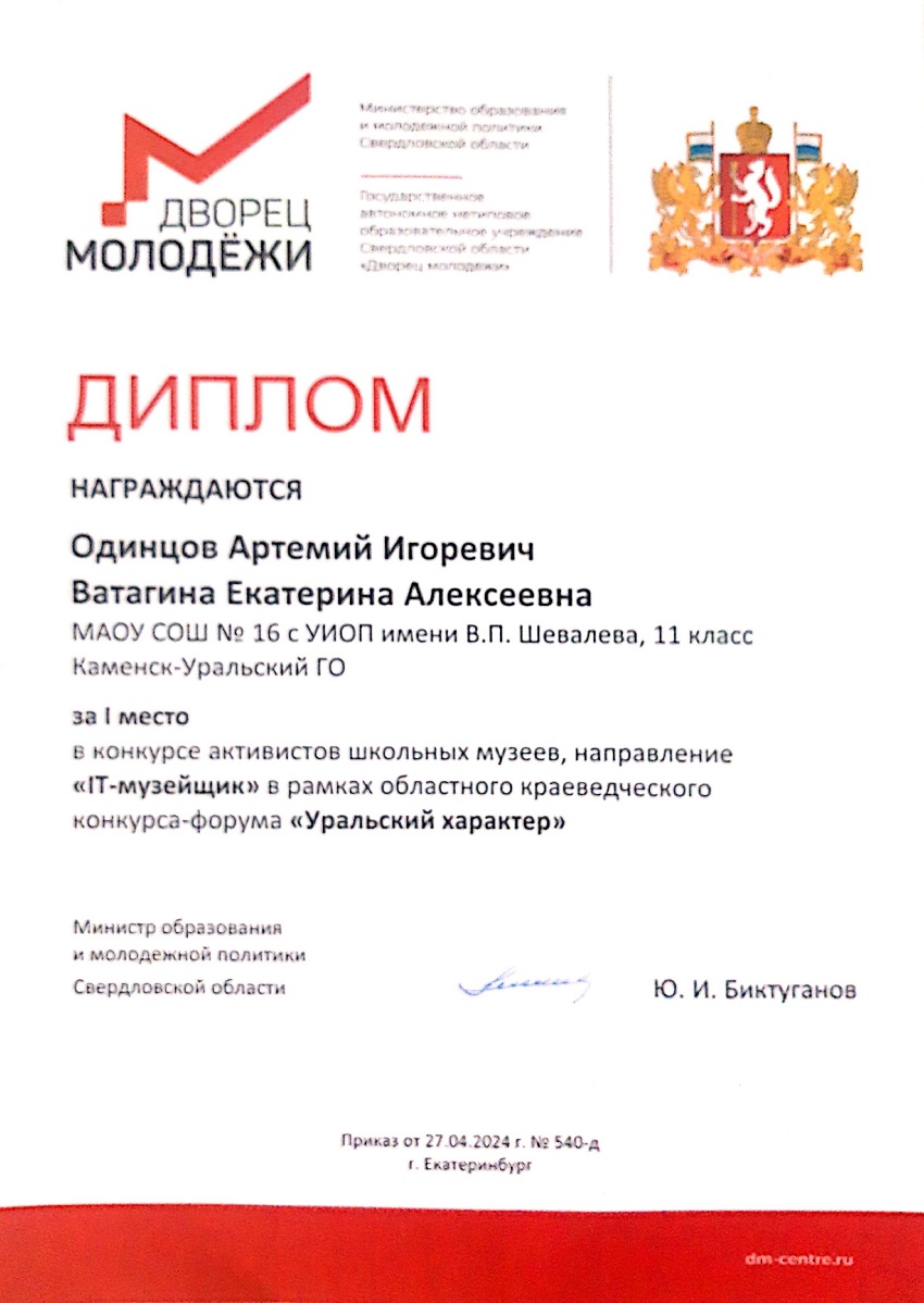Диплом победителей конкурса « IT – музейщик»