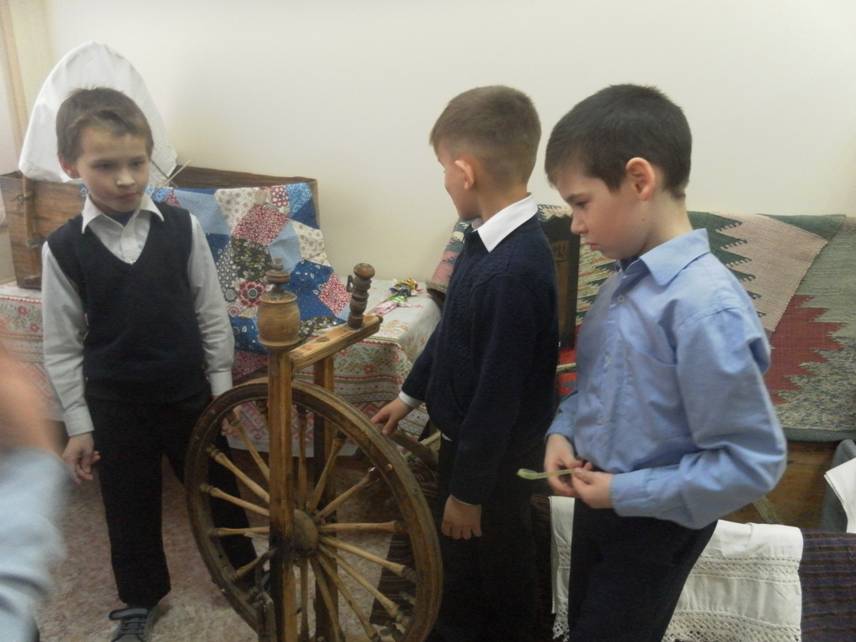 Старшеклассницы проводили мастер-класс с учениками по изготовлению кукол. Участвовали в конкурсе «Музейный экспонат» плели пояс на бердо.