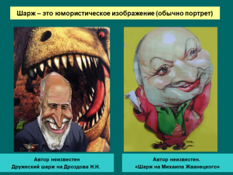 Другая форма сатирического жанра – шарж.