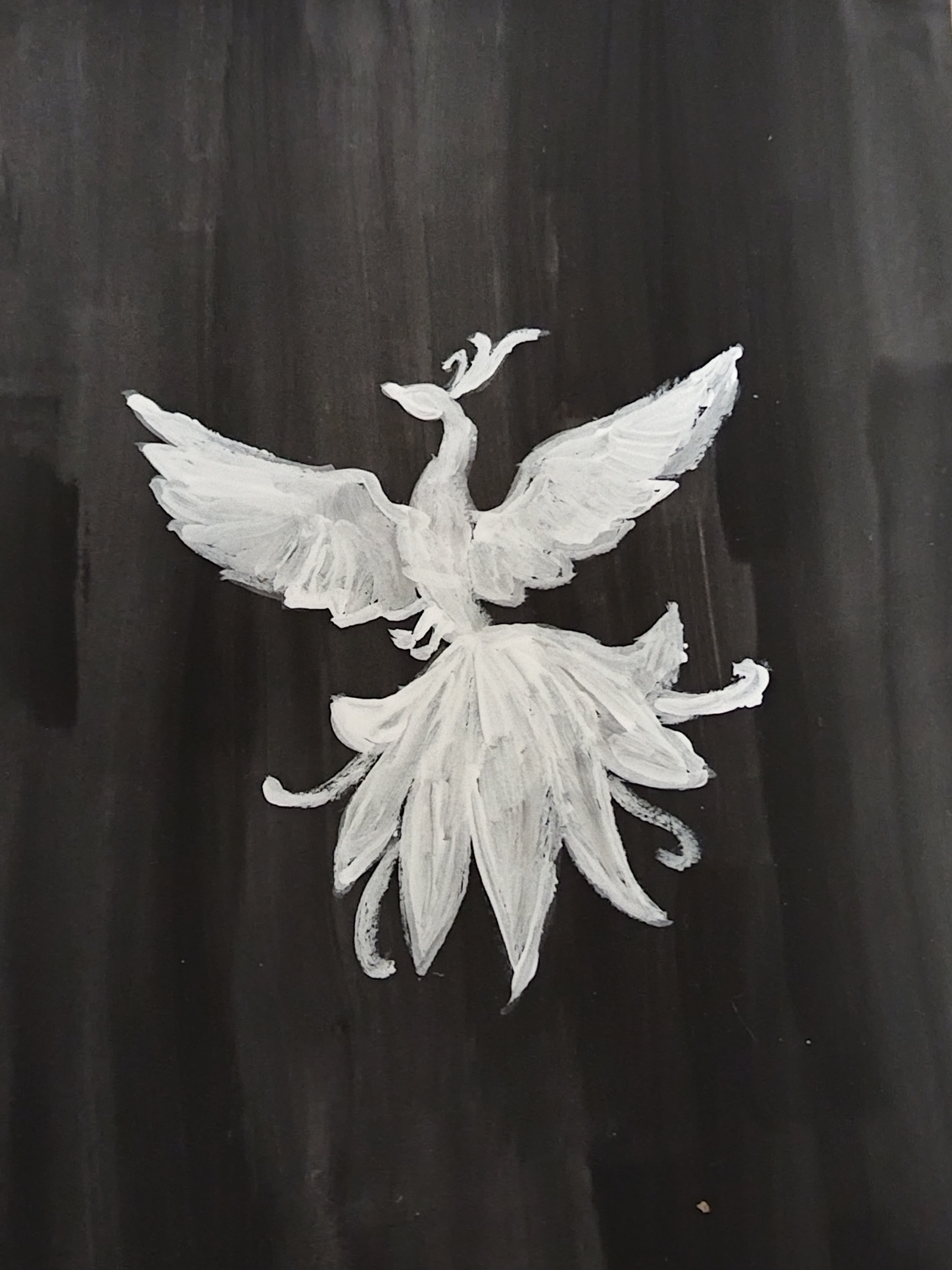 – Вспомните три вопроса, на которые вы отвечали в начале урока. Догадайтесь, что мы будем рисовать? Показывает образец рисунка (только белилами) на магнитной доске. Внимательно следуйте алгоритму: сначала рисунок белилами. После этого остановитесь. – Пока вы рисуете, поедем дальше, ведь до Палеха мы ещё не добрались. Учитель читает фрагмент №4 – Сейчас перед вами должна быть заготовка рисунка Жар-птицы белилами. Отложите кисточки, пусть гуашь высохнет, внимание на экран. | Ответ детей (Жар-птица). Приступают к работе над рисунком по образцу на магнитной доске. | Рисование по образцу Работа с текстом литературного источника | Образец рисунка (Приложение 6) Фрагмент текста №4 (Приложение 3) |