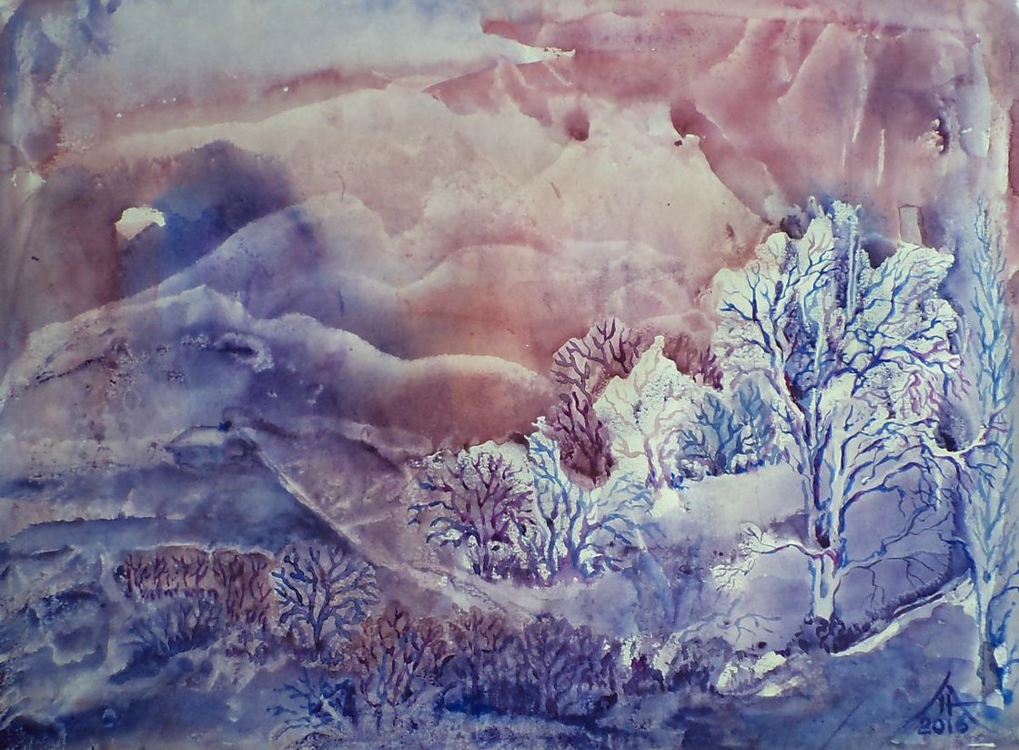 Попробуйте вместе с ребенком отгадать, на что похож полученный рисунок. Если использовать белую, голубую, серебристую краски, можно получить заснеженный лес, запорошенные деревья, волшебный зимний пейзаж. Добавьте несколько звездочек и луну на небосвод – зима готова!