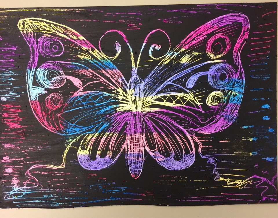 Рассмотрим технику выполнения граттажа с использованием восковых мелков.