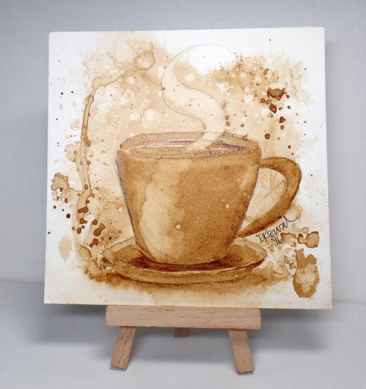 Кофейная живопись. Эта техника интересна тем, что рисунок создаётся с помощью растворимого кофе. Напоминает рисунок акварелью, но с удивительным кофейным ароматом. Именно растворимый кофе позволяет получить насыщенный, почти чёрный тон. И это делает рисунки контрастными, от самых светлых оттенков до глубоких тёмных акцентов. Главное условие - многослойность рисунка.