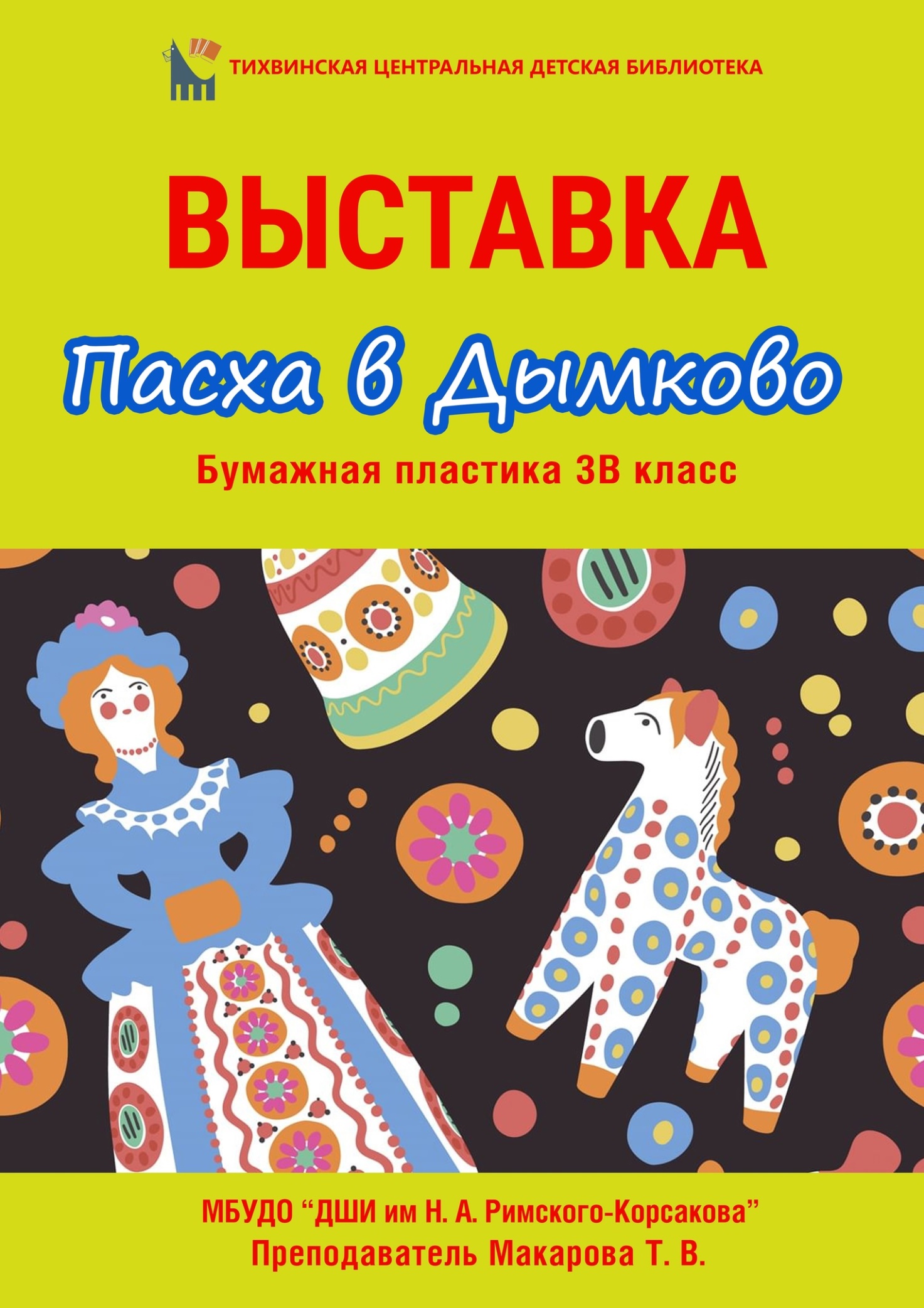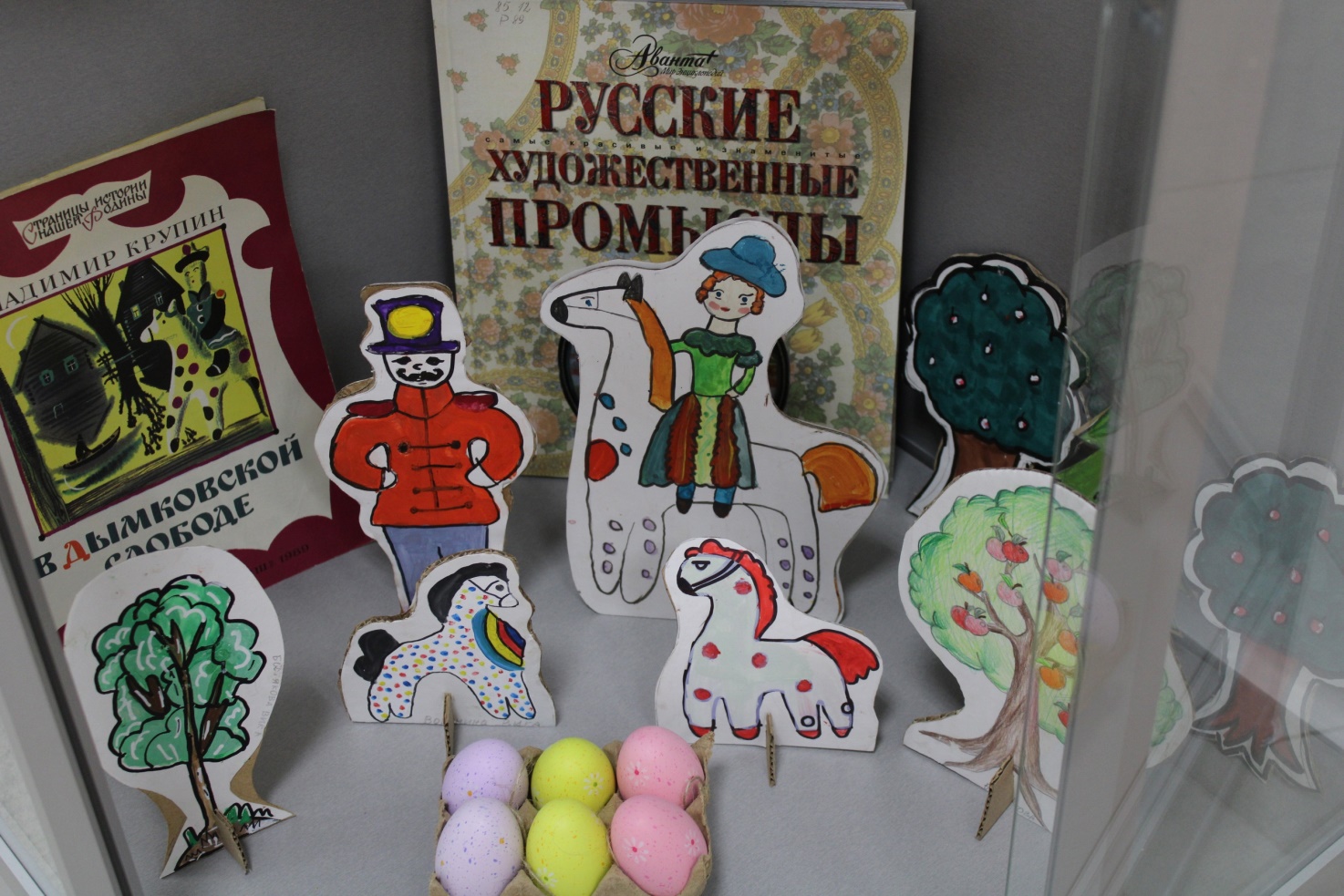 Цель проекта: создание авторских кукол - фигурок из картона по мотивам Дымковской игрушки, объединенных темой праздника Пасхи; организовать выставку проекта в центральной детской библиотеке г. Тихвина