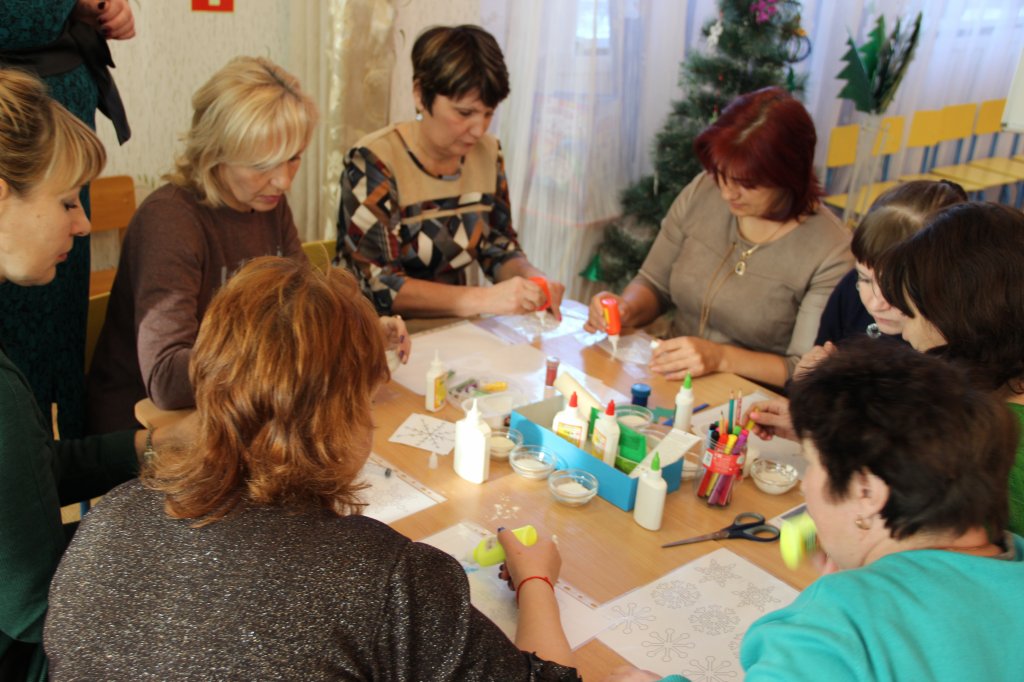 А теперь переходим к практической части. На ваших столах находятся необходимые для работы материалы. Не забывайте, что мы находимся в мастерской Деда Мороза и наши работы должны соответствовать данной тематики. Желаем Вам творческих успехов! (звучит музыка и воспитатели выполняют свои работы)