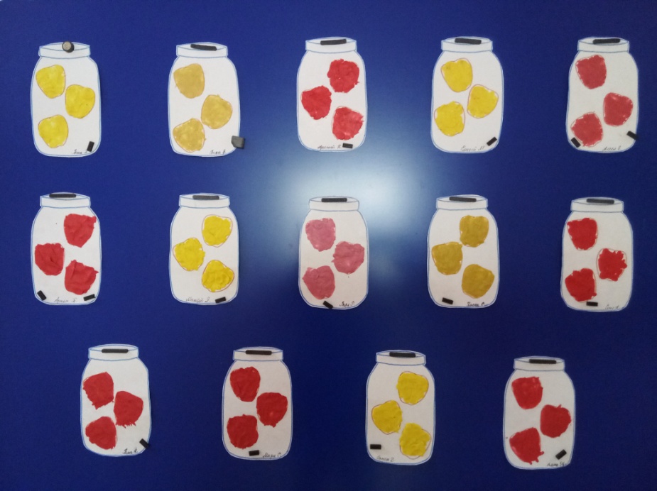 Раздаточный материал. Изображение фруктов- шаблоны (яблок) , шаблон в форме банки.