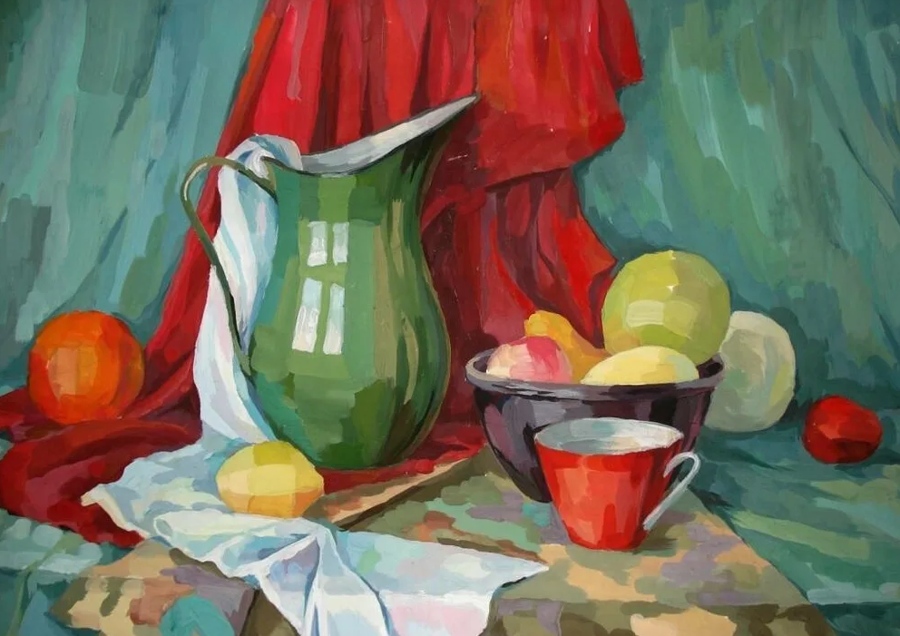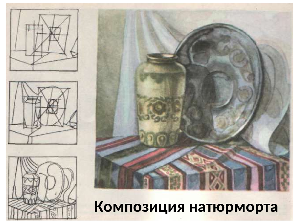 Составление натюрморта предполагает умение изображать форму различных предметов, используя светотень, перспективу законы цвета.