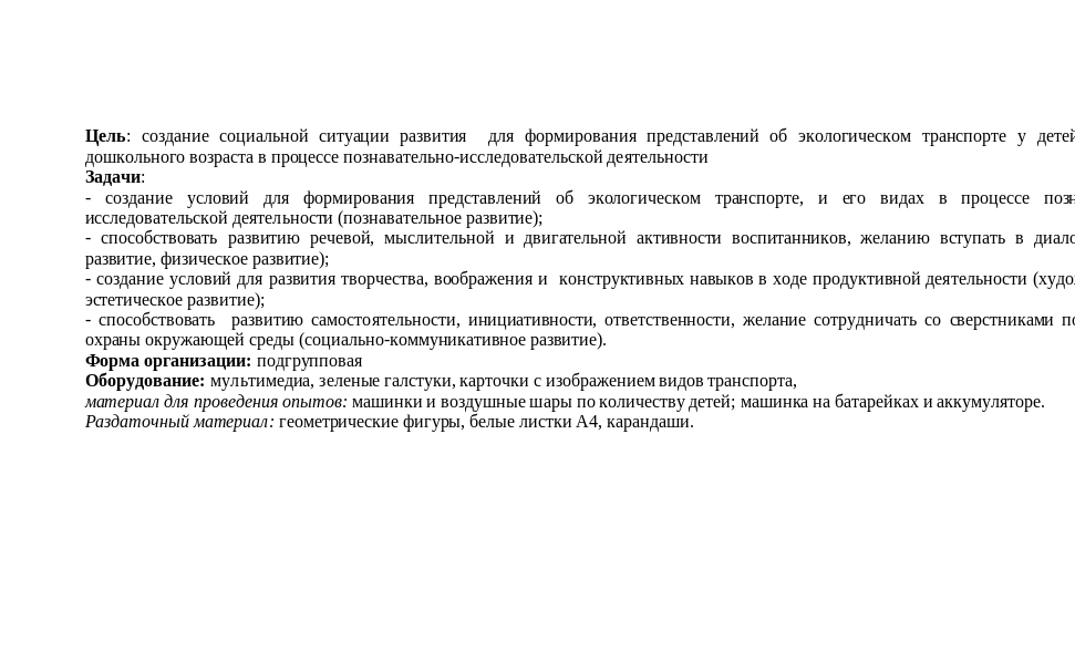 Конспект НОД по познавательному развитию в старшей группе "Экологический транспорт"