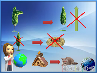 Эколог: Мы молодцы с вами, ребята! Очищенная от мусора и загрязнений, с обширными легкими планета дальше восстановится сама. Но мы можем помочь планете еще кое в чем важном. Чтобы такая печальная ситуация не повторилась вновь, нам нужно вновь познакомить жителей планеты с их домом и научить их быть друзьями планеты, на которой они живут. Справимся? [Ответы детей]