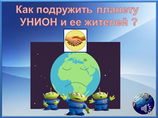 Воспитатель:Сегодня мы помогли планете - очистили почву и воздух от загрязнений. Но мы можем еще помочь Планете Унион. Как вы думаете в чем? [Ответы детей]