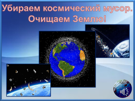 Эколог:Ребята, мы можем начать заботиться о нашей планете, еще даже еще не приземлившись на нее. Посмотрите – мы сейчас на орбите. Обломки спутников, ступеней ракет. Мы помогли другой планете, а наша планета даже из космоса кажется грязной. Давайте с орбиты и начнем уборку.