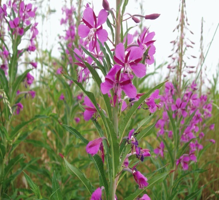Кипрей, иван-чай. Растет на вырубках, насыпях и склонах. Все части растения употребляют в пищу. Листья и цветки – весной и летом, а корни – осенью. Заваривают чай из листьев и бутонов. Варят зеленые щи, делают салаты из листьев и соцветий, которые содержат много витамина «С». Корни употребляют в сыром и вареном виде вместо спаржи и капусты. Из высушенных корней делают муку, из которой готовят каши, пекут хлеб, блины, лепешки. Из поджаренных корней получают заменитель кофе. Кипрей имеет и лекарственное значение: чай – болеутоляющее средство, помогает от бессонницы, головной боли.