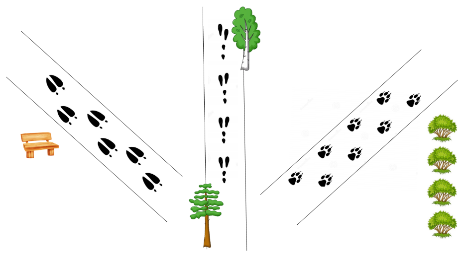 За правильные подобранные пары картинок дети находят в конверте у Ёжика подсказку, куда идти дальше (к пеньку).