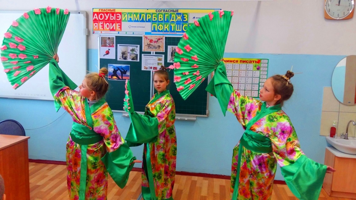 (Далее примерное произношение с японского. Дети учили с переводчика гугл для более эффектного вступления)