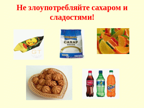 Не злоупотребляйте сахаром и сладостями! (Слайд 12)
