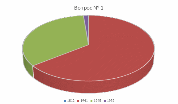 После того, как ребята ответили на вопросы, мы собрали анкеты и поверили их. Нам пришлось провести анализ тех данных, что мы получили. На первый вопрос: «Когда началась Великая Отечественная война?» Было предложено четыре варианта ответа.