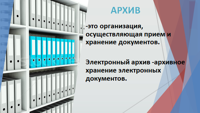 - Совершенно верно, давайте из ваших ответов соберем определение понятия «архив» (все вместе собираем определение, также определение высвечивается на слайде 3)