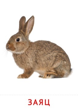 Дети находят на столе карточки с изображением животных (лиса, волк, рысь, заяц).