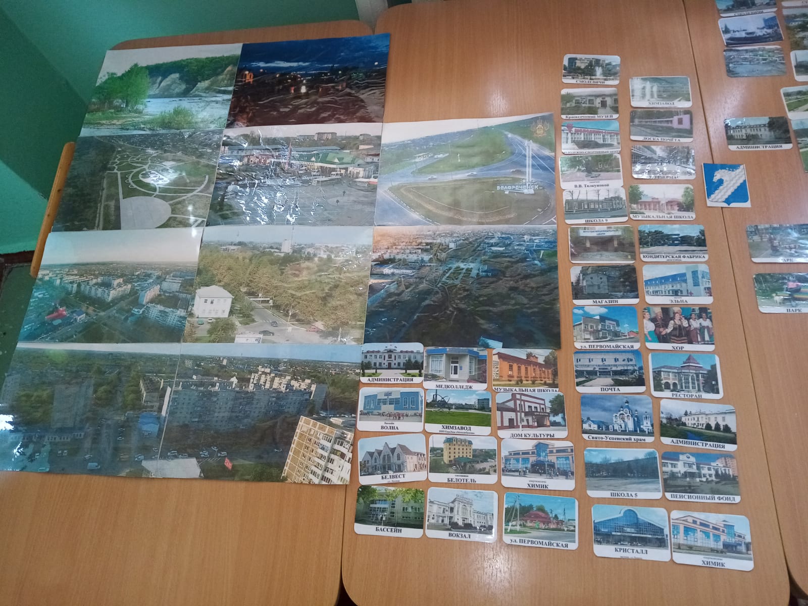 1 большая, 3 средних, 15 маленьких карточек с изображением герба города.