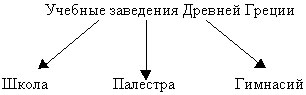 учитель | с 7 лет | учили читать, писать, считать и рисовать; овладевали игрой на флейте и других инструментах, искусством хорового пения. | мальчиков | Стиль, дощечка покрытая воском, папирус¸перо |