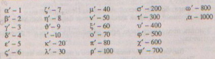 А писали на деревянных табличках, покрытых воском и деревянной палочкой, которая называлась стилем. Плоским концом стиля затирали допущенные ошибки. “Чаще переворачивай стиль!” - говорил учитель – грек своим ученикам. Примерно то же требует учитель в наши дни: работай с черновиком, не пиши сразу набело, совершенствуй свой стиль. 1. Научимся писать тех родных и близких, кого мы каждый день видим в своем доме. “Мама” – по – гречески 3.А как будет по-гречески “папа”? Во время выполнения задания наблюдаю за детьми, иногда ругаю, советую чаще переворачивать стили, работать прилежно. Проверяю выполнение задания, вызываю одного ученика к доске. Урок грамматики подошел к концу. Мы научились немного писать и читать по-гречески. Мы научились немного читать и писать по-гречески, теперь начнем учиться считать. Тем, кто был прилежен в изучении алфавита, нетрудно будет освоить и счет, потому что наши буквы умеют в разных случаях быть то знаками речи, то цифрами и числами. Учитель открывает написанные на доске цифры. Ребята, обратите внимание, исчезли заглавные буквы, остались только прописные. Над ними поставлен специальный значок. Буквами обозначены единицы, десятки и сотни. Арифметические знаки у греков были такие же как у нас.