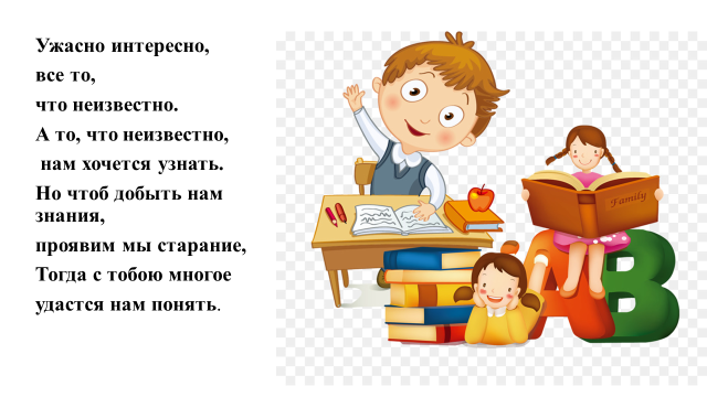 | Проверка готовности класса и оборудования; эмоциональный настрой на урок. Прочитайте стихотворение, как вы его понимаете? «Ужасно интересно, все то, что неизвестно. А то, что неизвестно, нам хочется узнать. Но чтоб добыть нам знания, проявим мы старание, Тогда с тобою многое удастся нам понять. -Эти строки будут девизом нашего урока. | Организуют свое рабочее место. Приветствуют учителя. - Будем учиться добросовестно и старательно. Будем внимательными, не будем отвлекаться. | Фронтальный. |