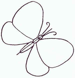 Рисуем передние крылья, а затем от середины нижнего края переднего крыла нарисуем задние крылья, дорисовываем усики.