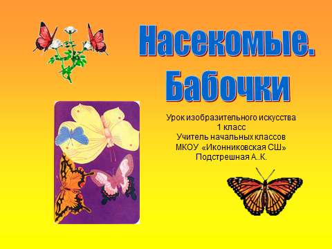 - Да. Сегодня мы узнаем о многообразии бабочек и других насекомых, цель нашего урока: научиться рисовать бабочку и украшать её крылья узором.
