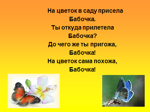 -Ребята, вы все знаете, что бабочки являются насекомыми. А каких ещё насекомых вы знаете? (Ответы детей)