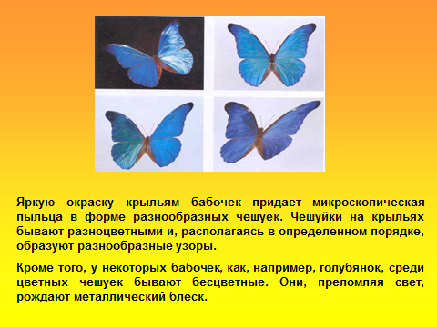 -Конечно же, красота бабочек в её крыльях, в их разнообразной, яркой расцветке и узорах.
