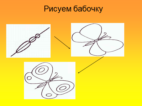 6.2Рисование бабочки. Творческая практическая деятельность учащихся(работа по образцу). (10 мин.)