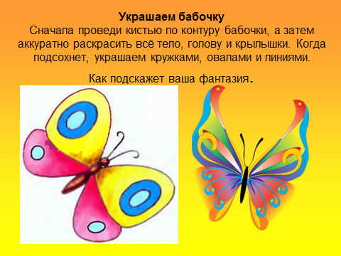 -Пофантазируйте и «нарядите» свою бабочку в красивое, яркое, узорчатое платье, такое, какое вам хочется.