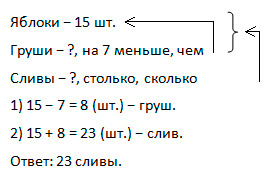 Прочитайте её про себя. Саша, прочитай задачу, а вы внимательно слушаете Сашу. Чтобы лучше понять условие задачи составим краткую запись, Саша будет работать у доски, а все остальные записывают в тетради.