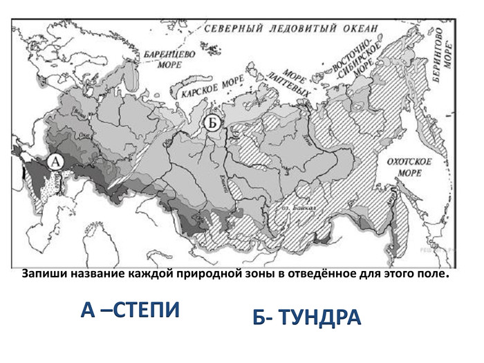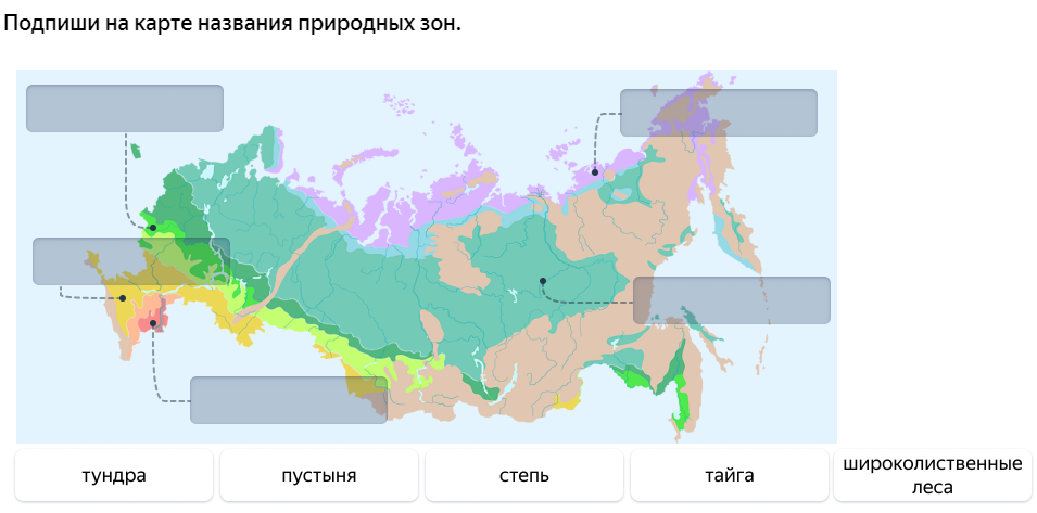 - Умение находить и показывать на карте природных зон России — основные природные зоны;