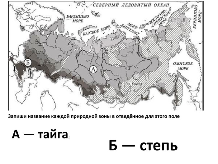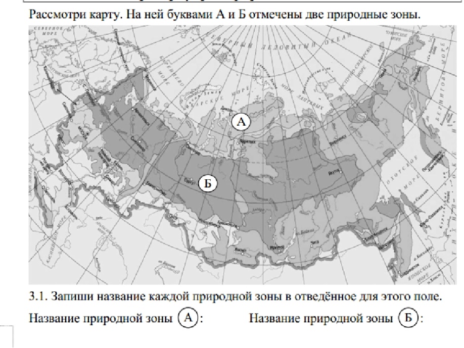 Включение в систему знаний (Подготовка к ВПР) | Нацеливает детей на более ответственное изучение темы. Объясняет этот вид задания в ВПР. Работа по карточке. Определи название природной зоны.
