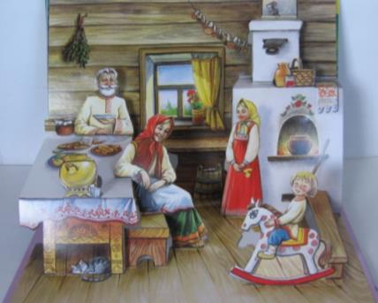 В доме появилась труба. Что изменилось с этим? (В доме стало чисто, сажа выходила через трубу на улицу.) В комнатах стало тепло. Готовили еду в печке, использовали разную посуду.